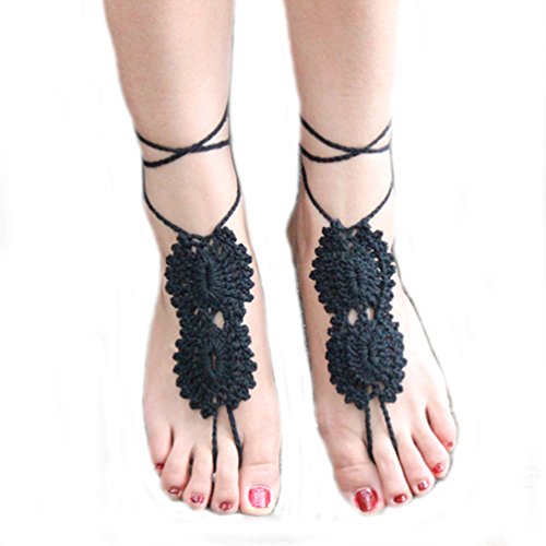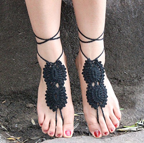 Ewandastore 1 Pair Crochet Barefoot Sandals, Nude Shoes, Foot Jewelry, Anklet, Bridesmaid Accessory, Yoga Shoes, Beach Pool Wedding Accessory(Black)