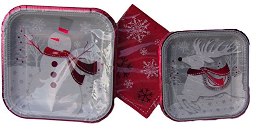 Glittery Red and Gray Snowman and Reindeer Paperware for 8