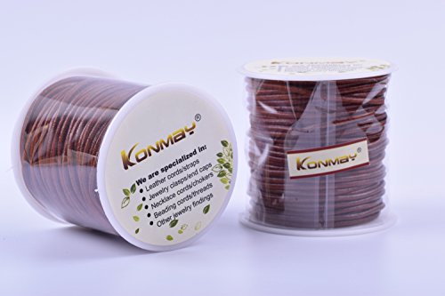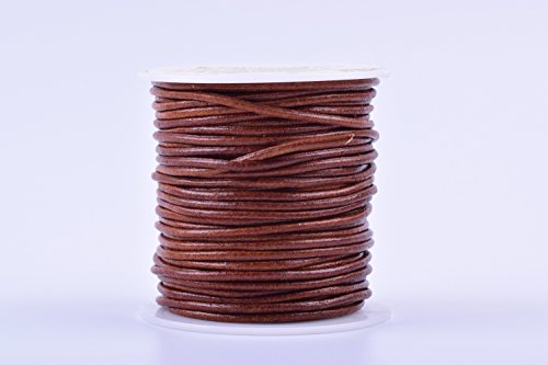 KONMAY 1Roll 25 Yards 2.0mm Distressed Brown Color Soft Round Real Jewelry Leather Cord