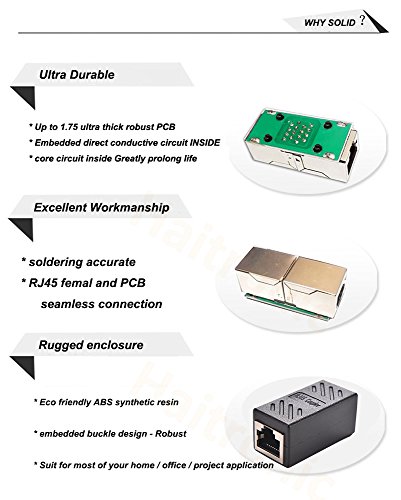 USAGE: This Haitronic RJ45 Coupler extender is very much ideal for extending your home, office, hotel, big project etc... ethernet cable by connecting 2 male network cables together.