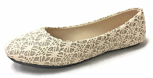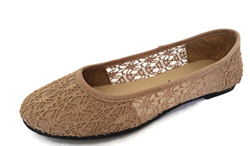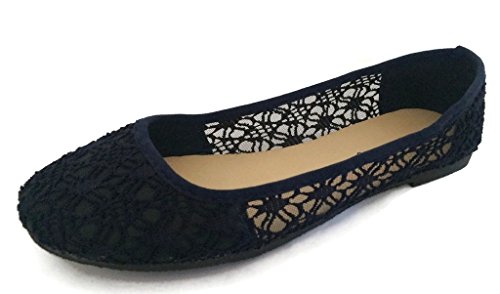 Product DescriptionThese stylish flats have a beautiful Lace over Mesh upper, with a flexible rubber sole. Very light weight and comfortable, these shoes will accent any work to evening outfit! Fashion meets Comfort in this everyday shoe!0