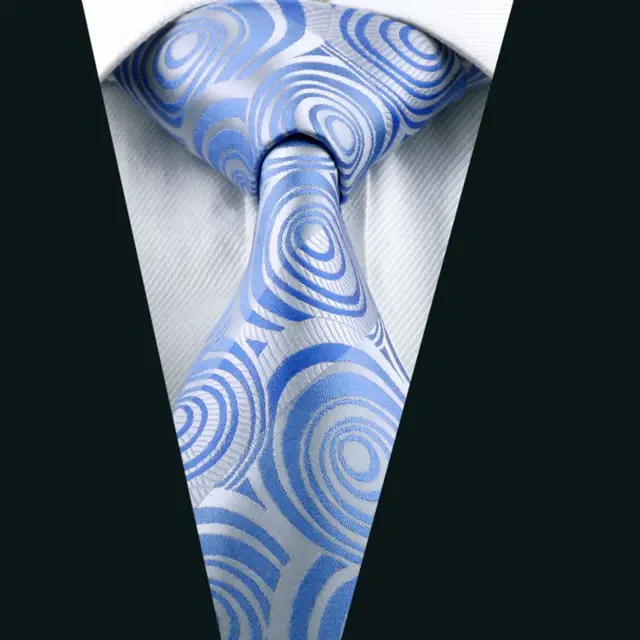 남성 넥타이 100% 실크 블루 & 화이트 참신 자카드 짠 넥타이 Gravata 남성 정장 웨딩 파티 비즈니스 무료 우표 LD-1127