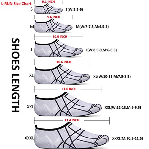 S: US Women:5.5-6=Foot Length 8.858in-9.055in=Insole Length 8.583in=EU 35-36 M: US Women:7-7.5/Men:4.5-5=Foot Length 9.252in-9.449in=Insole Length 9.055in=EU 37-38 L: US Women:8.5-9/Men:6-6.5=Foot Length 9.646in-9.843in=Insole Length 9.685in=EU 39-40 XL: US Women:10-11/Men:7.5-8.5=Foot Length 10.039in-10.263in=Insole Length 9.882in=EU 41-42 XXL: US Women:12-13/Men:9-9.5=Foot Length 10.433in-10.630in=Insole Length 10.236in=EU 43-44 XXXL: US Men:10.5-11.5=Insole Length 10.745in=EU 45-46 0