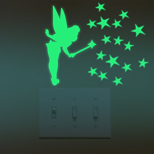 Warmtree Removable Creative Fairy Stars Luminous Sticker Wall Decal Light Switch Decor Switch Sticker for Kids Room Bedroom,2 Sets