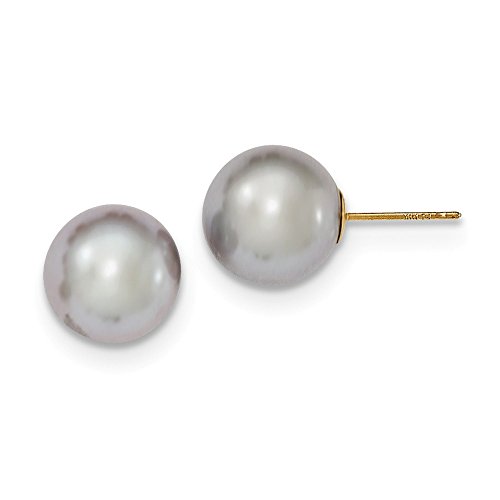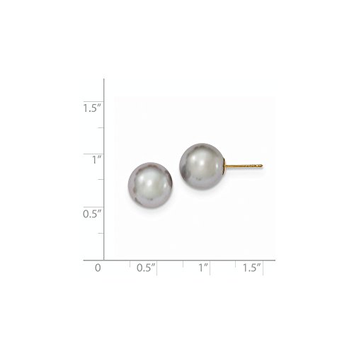 Solid 14k Yellow Gold 10-11mm Grey Round FW Cultured Pearl Stud Earrings
