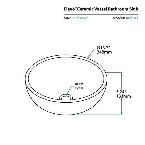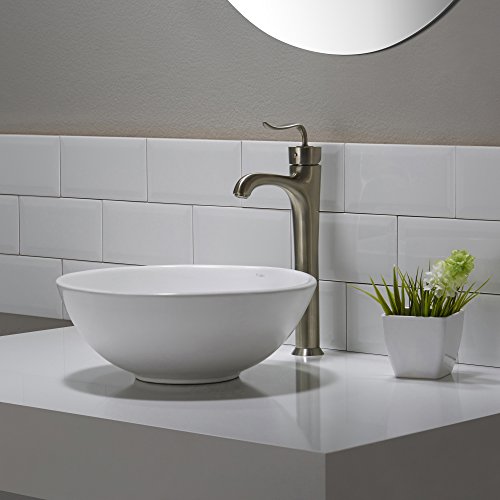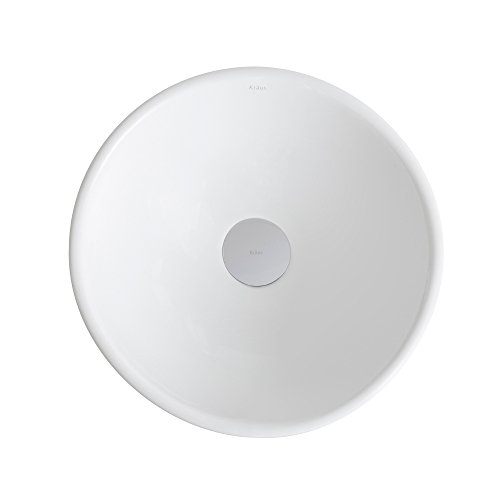 Kraus KCV-341-CH Modern Elavo Ceramic Small Round Vessel Bathroom Sink with Pop Up Drain, Chrome/White