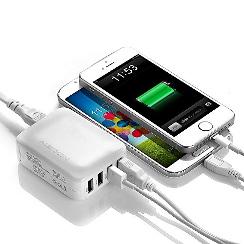 Aibocn 21W 4-Ports USB Wall Charger Travel Adapter Built-in Multi-protection System and Premium Microchips for iPhone, iPad Air / Mini, ipod, Samsung Galaxy, Nexus, HTC, Motorola, LG, Google, and More