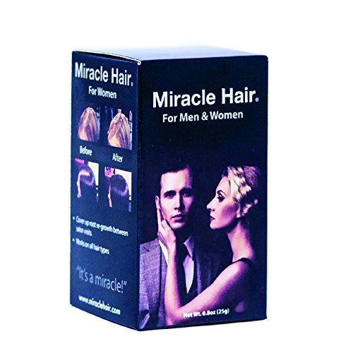 -. Feature : WANT TO LOOK YEARS YOUNGER IN JUST SECONDS?: Miracle Hair is easy to use, and completely eliminates the need for embarrassing hair pieces or painful and expensive surgery! / WIND RESISTANT, SWEAT RESISTANT, AND RAIN RESISTANT: Miracle Hair binds to your natural hair, making grays invisible and a fuller head of hair lasting longer throughout your day! / ALL NATURAL INGREDIENTS - NO HARSH CHEMICALS OR DYES: Unlike similar products, the fibers used in Miracle Hair are not synthetic or animal based, but are derived from cotton. / NOT JUST FOR THINNING HAIR! COVER UP OUTGROWN ROOTS AND GRAYS: Eliminate the need for constant salon visits by using Miracle Hair to cover up roots as hair grows! / COVERS UP THINNING OR BALDING AREAS WITHIN SECONDS: Made from plant-derived cotton fibers, Miracle Hair uses "electromagnetism" to bind fibers to your existing hair, firmly locking onto the shaft and leaving a fuller, thicker head of hair!