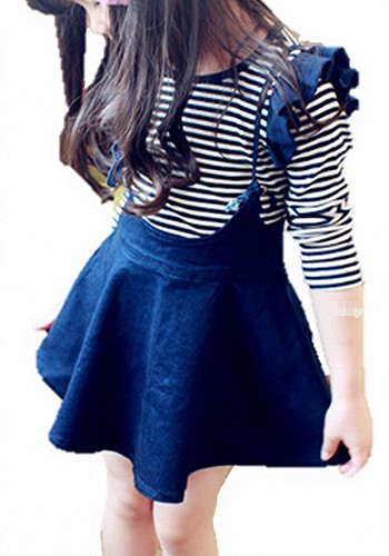 -. Feature : ロンTとデニムのサロペットの2点セット。ミニスカートはたっぷりのフレアライン。ストレッチも効いているので、着心地も◎。 / 長袖Tシャツは何にでも合わせやすいボーダー柄。肩についているフリルがとってもキュート。 / セットアップなので、コーディネートに悩む必要もなし。もちろん、別々でも使いまわしができるので着回し抜群です! / サイズ:100、110、120、130、140cm / 素材:綿50%、その他50%