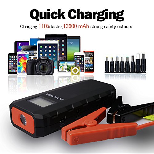 500A Peak Jump Starter, GooBang Doo BOPOWER 500A Peak 13600mAh Portable Car Jump Starter Battery Pack Booster and Phone Power Bank with Smart Charging Port, LCD Screen and LED Lighting