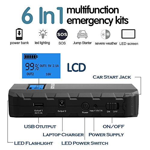 - [6 in 1 Multi-Function]: (Emergency jump start, USB quick charge, LED flashlight, S.O.S lighting signal for help, new-added LCD screen, power extend ). it can help you In any case when you are adventure, outdoor, daily, emergency, high and low temperature(-20°c to 60°c) etc.