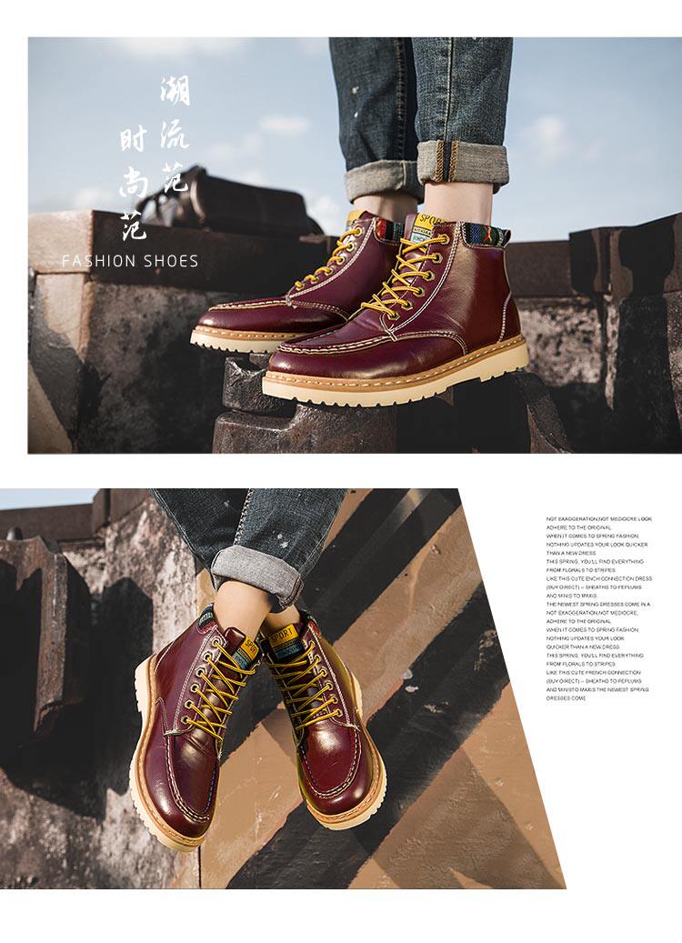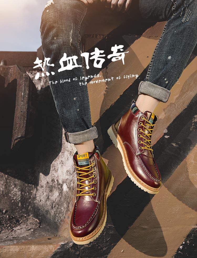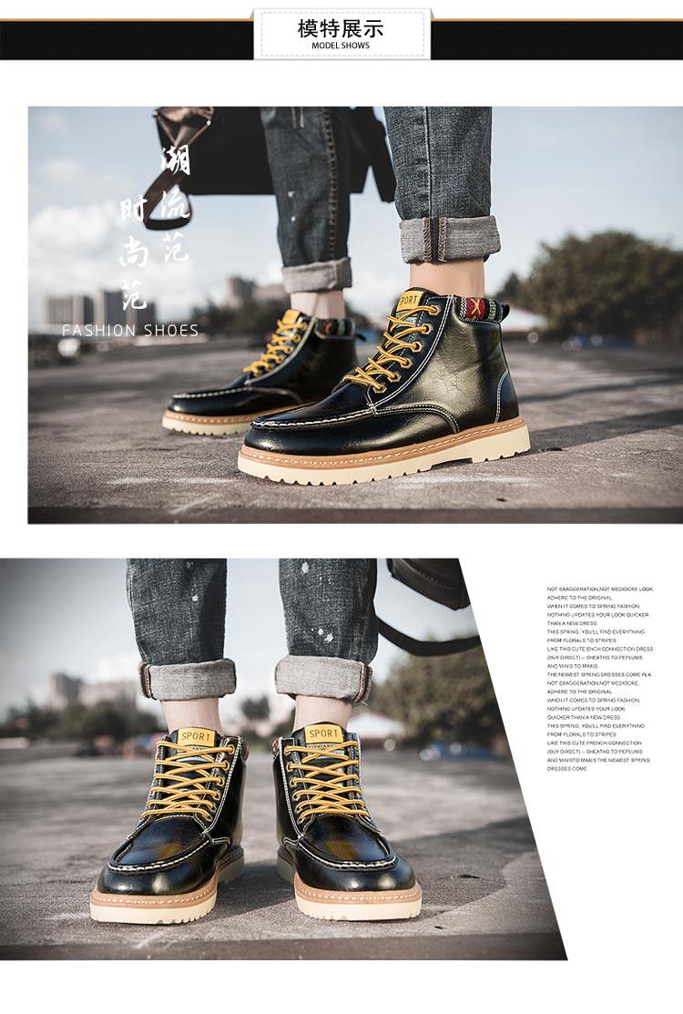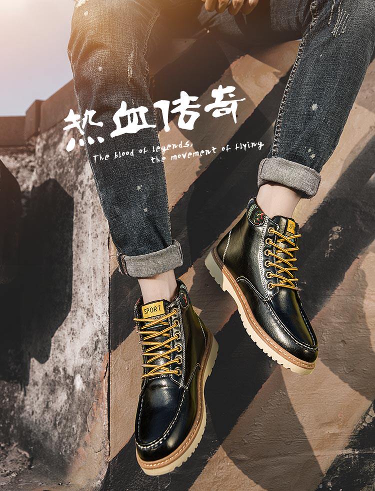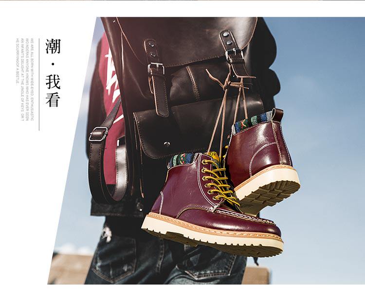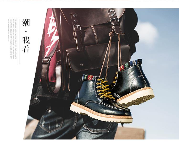 短靴男秋冬男靴子英伦百搭高帮休闲鞋民族风马丁靴大头工装靴潮靴