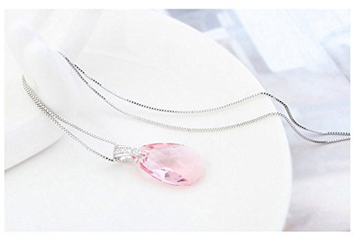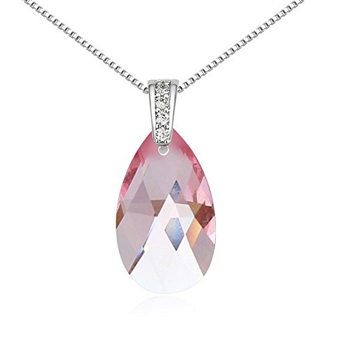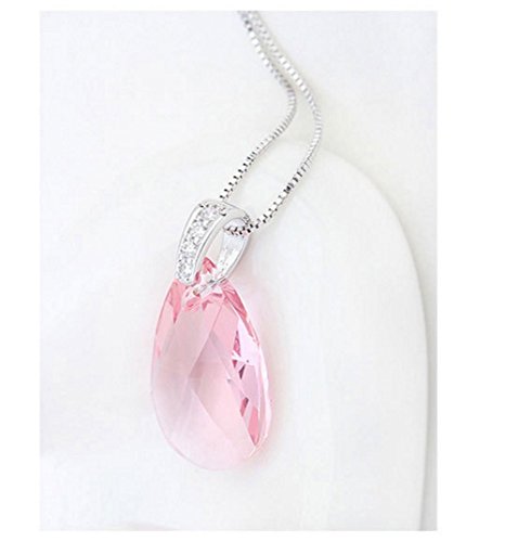 Title : The Starry Night Swarovski Drop Light Rose Crystal Transparent Pendant Diamond Accented Silver Plated Necklace-Tasty Life Theme