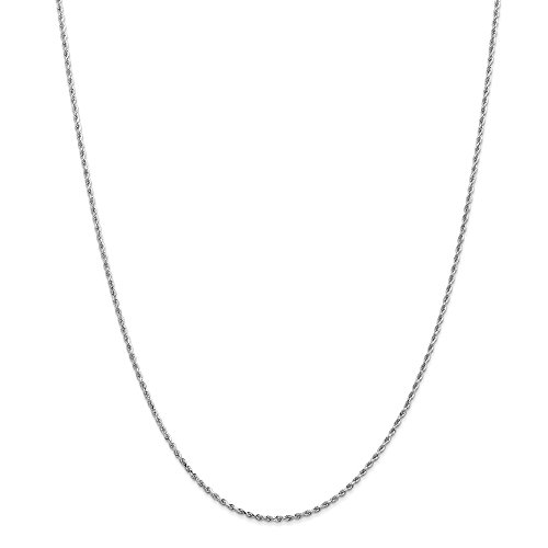 Solid 14k White Gold 1.5mm Diamond-Cut Rope Chain Anklet 9" - with Secure Lobster Lock Clasp