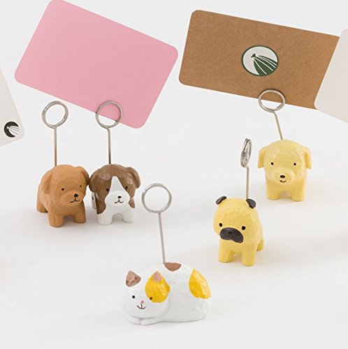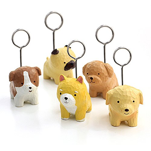 Chris-Wang 5Pcs Mini Cute Dog Mixed Style Memo Clip Holder Display for Cards/Notes/Photos/Pictures/Placecards- Resin Base and Metal Wire loop