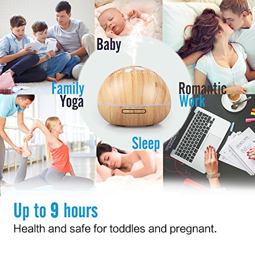 [Large Capacity] This aroma diffuser hold up to 300 mL to cover 10-30 square meters up to 16 hours . It will run 4 hours on one tank of water.