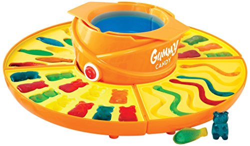 -. Feature : Make fish, bear and worm gummy candies / 4-silicone gummy candy molds and trays / 1-non-stick removable gelatin pot with easy-pour spout / Heated base for melting gelatin mixture / Simple on/off switch / Disassembles for easy cleaning / BPA free