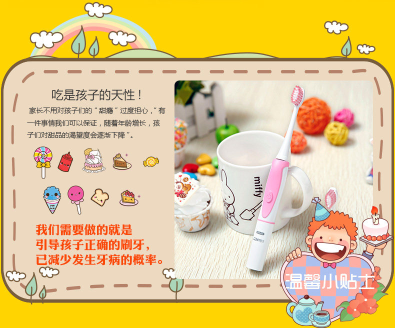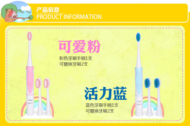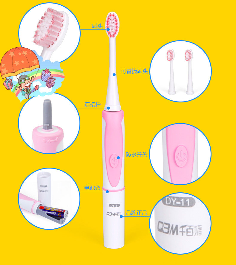 This type of children suit children aged between 6 and 14 years to use electric toothbrush, especially small 0 to 3 years old children under five years old may not be used