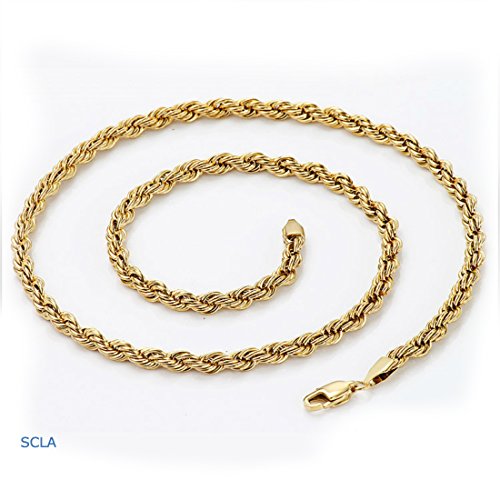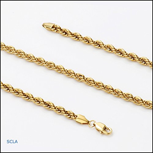 -. Title : Gold Chain Necklace 24K Real Diamond Cut Gold Filled 4.5mm Rope Chain USA Made! Life Time Waranty