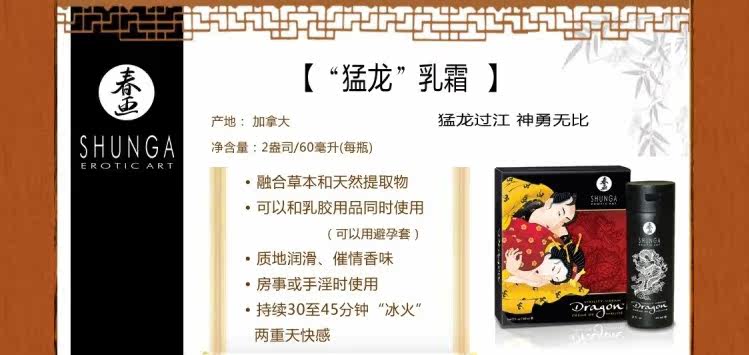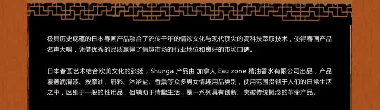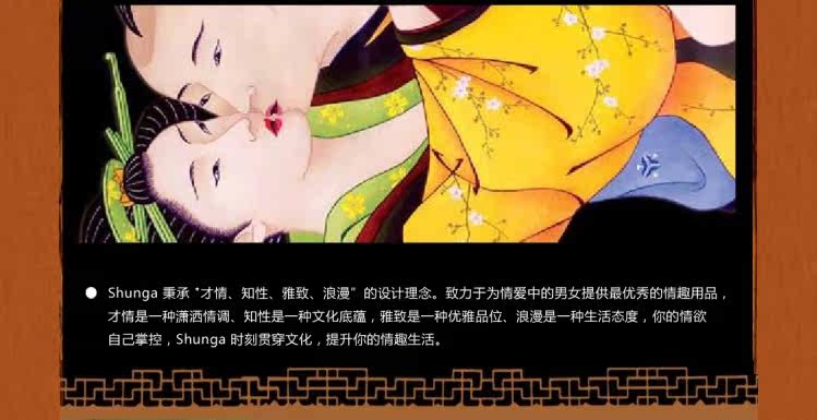 虽然一些印刷在画布或刻画在木块上的SHUNGA作品真实的描绘了夫妻的性爱场面,但人们并没有感觉到强烈的色情味道,而对