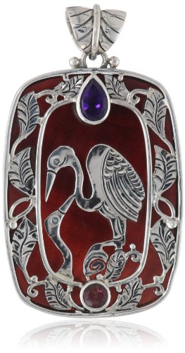 - Title : Sajen Sterling Silver Hand made Heron and Black Shell with Stones Pendant Necklace