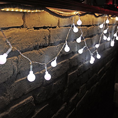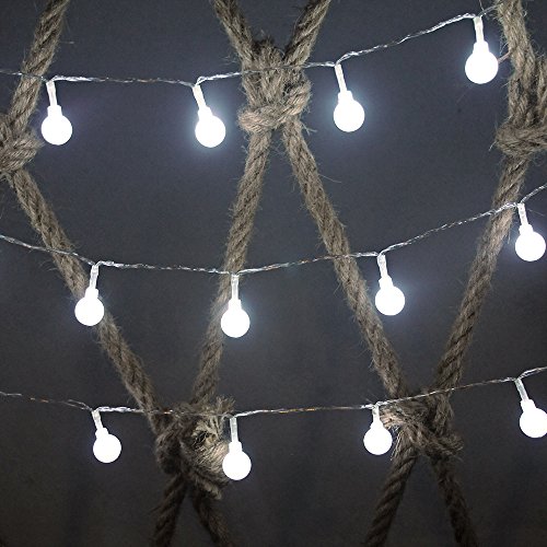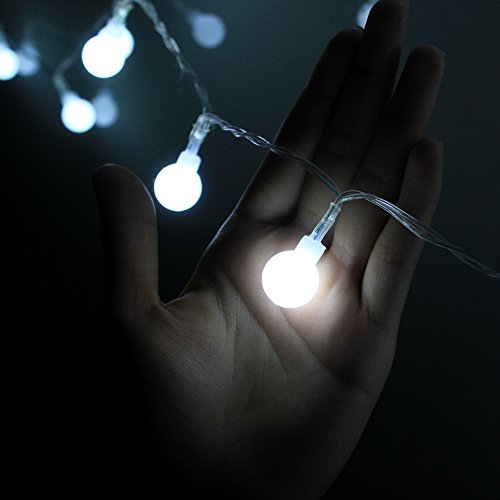 - 40 white mini globes and one cool white LED string light are included. The diameter of each globe is 0.7 inch. Globes are spaced every 4 inches.