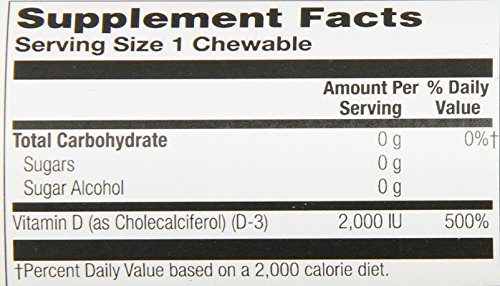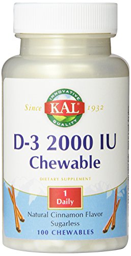 KAL D-3 2000 IU Sugarless Chewable Vitamin Tablets, Cinnamon, 100 Count