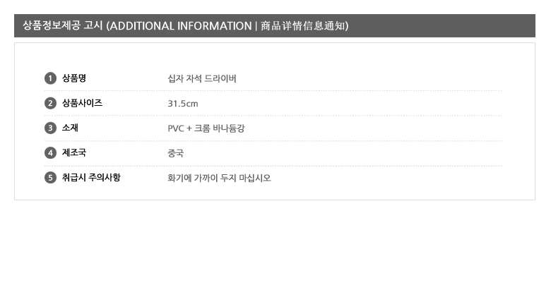 - * 전자상거래에 관련 상품정보 제공에 관한 고시 항목에 의거 본상품의 입점사에 의해 등록된 정보입니다.