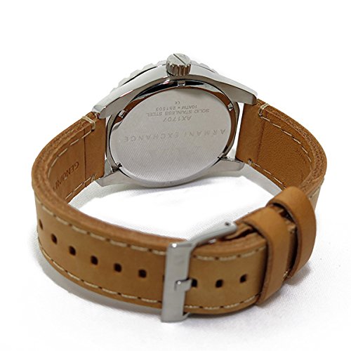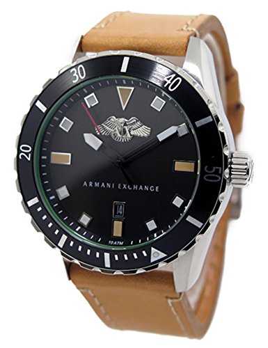 -. Feature : アルマーニ エクスチェンジ EXCHANGE / 仕様 クオーツ、10気圧防水、カレンダー(日付)、カラー:ブラック(文字盤)、ライトブラウン(ベルト) / 素材  ステンレス(ケース)、レザー(ベルト) / サイズ (約)H43×W43×D12mm(ラグ、リューズは除く)、重さ(約)82g、腕周り最大(約)19cm、最小(約)14cm / 付属品 専用BOX、取扱説明書、保証書