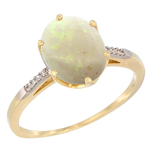 -. Title : 10K White Gold Natural Opal Ring 10x8 mm Oval Diamond Accent, sizes 5 - 10