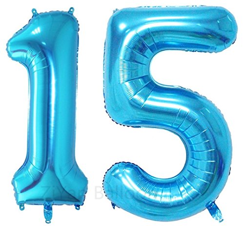 ZiYan 40 Inch Giant 15th Blue Number Balloons,Birthday / Party balloons