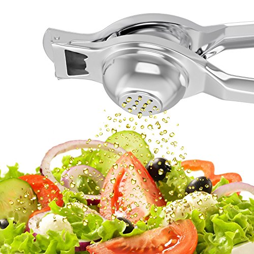 -. Feature : BEST IN CLASS: It is designed to bear maximum pressures so as to squeeze even the last drop of your lemon or lime .Its superior design prevents bend in the handle under pressure It is one of the finest lemon wedge squeezer. / USER FREINDLY:Simply cut the lemon in half and place it cut-side down in the bottom bowl of squeezer, and squeeze the handle. It can be used by kids, old men effortlessly. It can be used to get juice out of lemons, limes or blood oranges as well. / BIGGER BOWL:This solid and strong stainless steel manual lemon press juicer has large bowl to handle large size lemon and lime, even small oranges. / BONUS:This lemon squeezer comes with a BOTTLE OPENER on the back of it. You can also hang the Lemon squeezer by this opening. / LIFETIME WARRANTY: Buy with no risk. Made to last forever, if you are not satisfied, contact us for full refund with no questions.