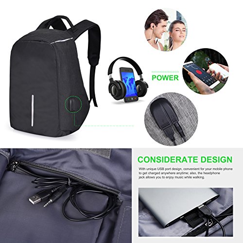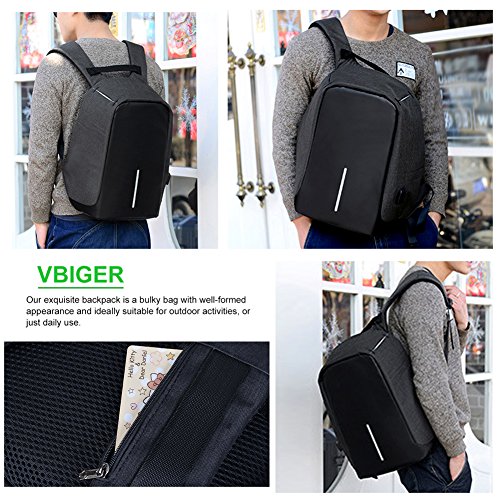 -. Title : Vbiger Laptop Backpack Casual School Bag Large Capacity Shoulder Book Bag with Charging Port and Headphone Jack for Men and Women