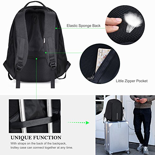 -. Feature : Considerate Design- With unique USB port design, convenient for your mobile phone to get charged anywhere anytime; also, the headphone jack allows you to enjoy music while walking. / Large Capacity- With interior multi-purpose pockets, it's unnecessary for you to worry about how to carry all your daily supplies, like computer, cell phone, licenses, wallet and magazines, etc. / High-quality Material- Delicately crafted with high-end mesh fabric, provides excellent sweat absorbent and tear resistant performance, and enjoys better air flow. / Offer the Maximum Comfort- Designed with S-shape and breathable shoulder strap, it is quite comfortable and relaxed to carry. / Unique Function- With straps on the back of the backpack, trolley case can connect together at any time.