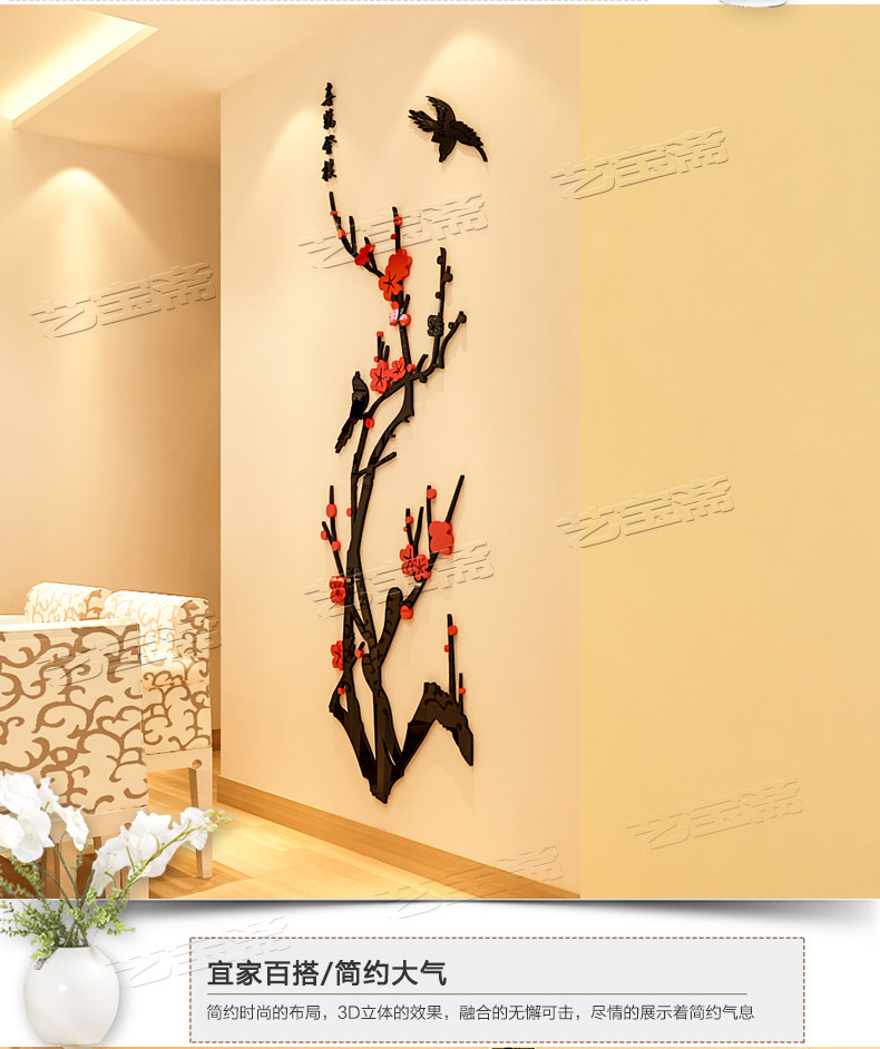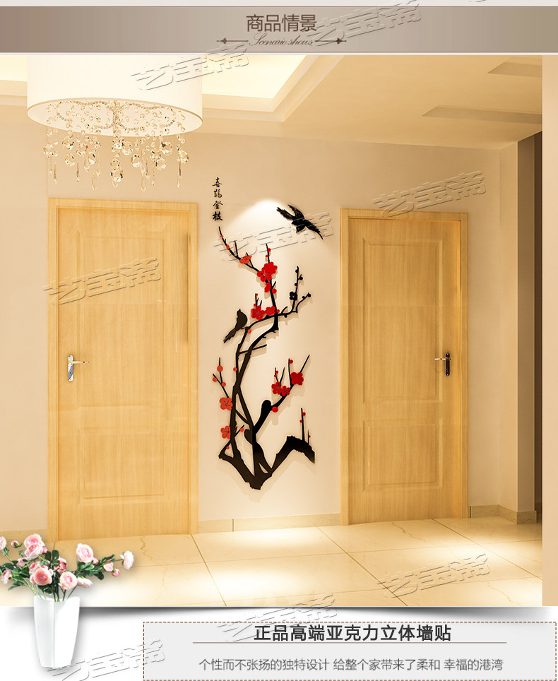 亚克力水晶3d立体墙贴画纸背景墙卧室玄关客厅墙壁房间家居装饰品