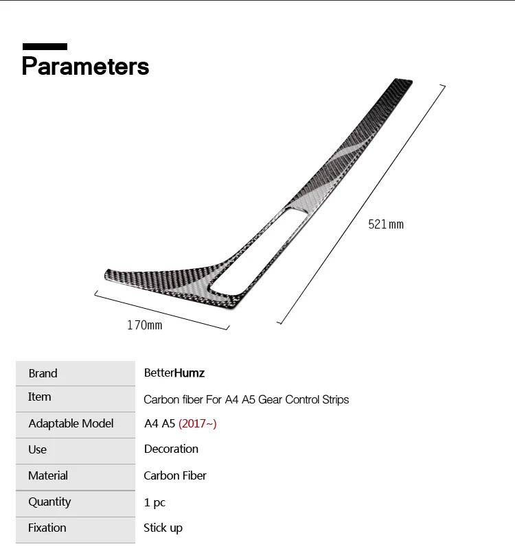 Applicable models:For Audi A4 A5 2017-