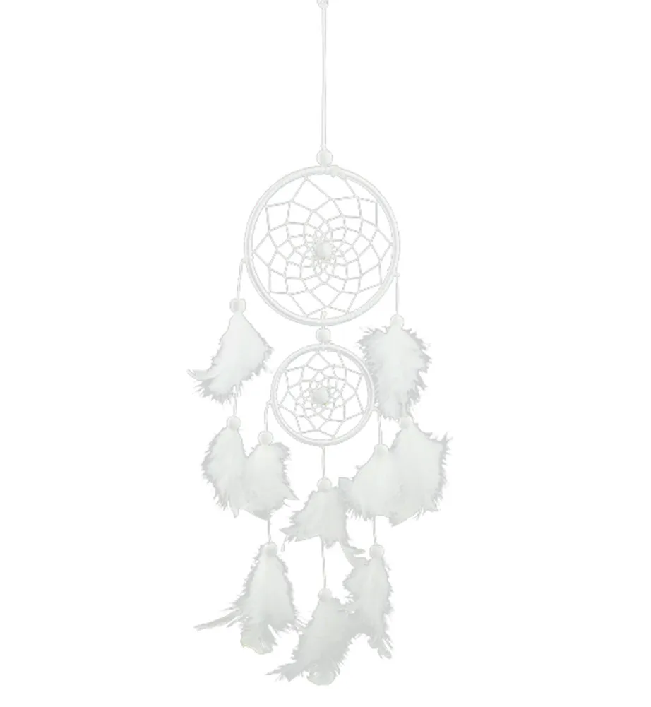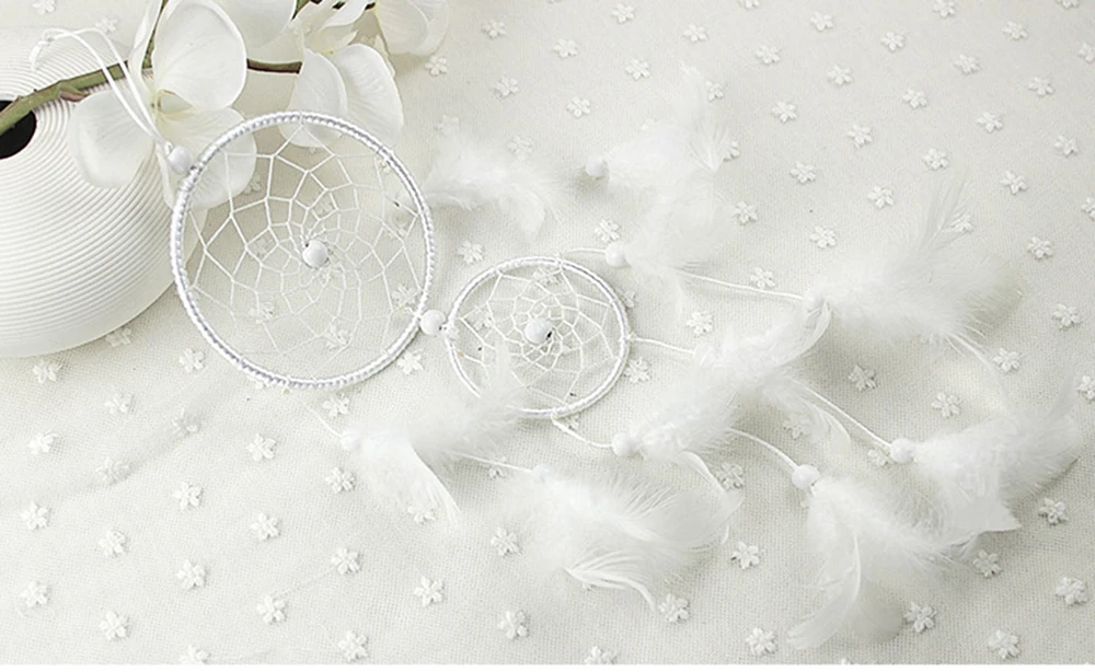 Material: Goose feather + white pearl + satin thread + cotton thread