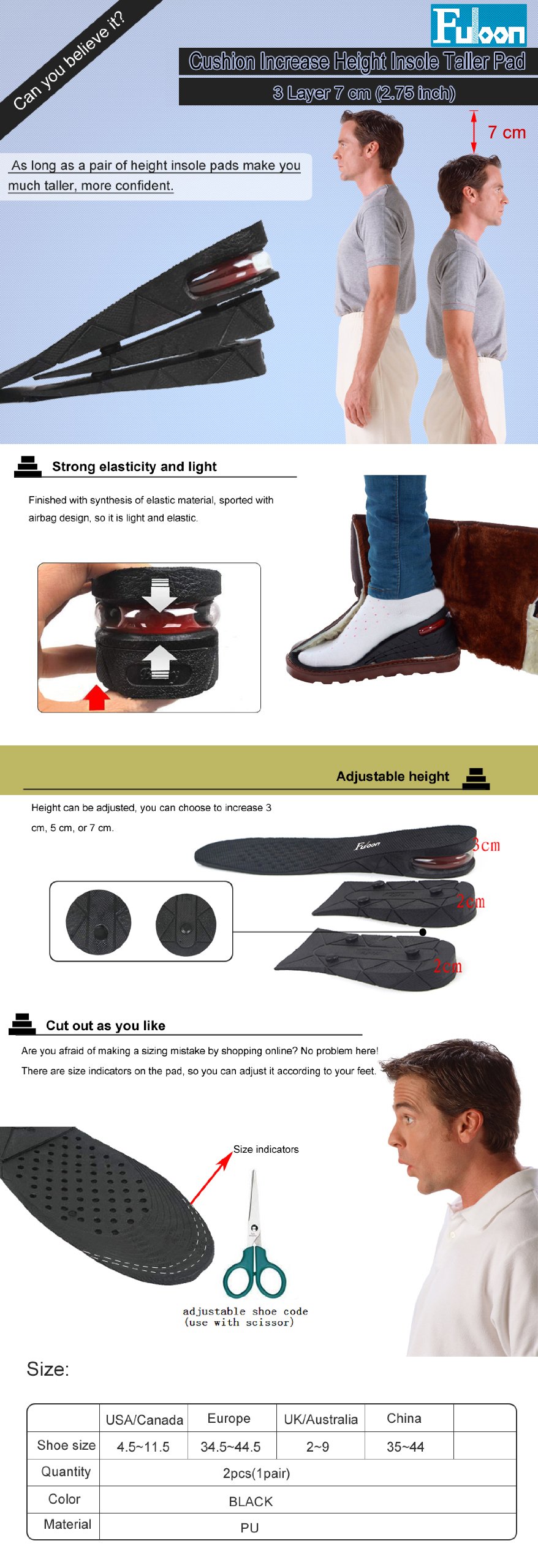 ☆ Just use it as an insole for your stock, up to 7 cm tall!