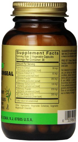 -. LegalDisclaimer : Solgar Full Potency Echinacea/Goldenseal/Cat's Claw Complex Vegetable Capsules, 60 Count non-returnable