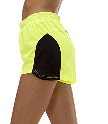 Binding : Apparel Product Description Stylized, relaxed-fit Ladies short with unique contrast paneling and drop hem coverage. This elastic-waist running short is perfect for limitless athletic movement on the fly.