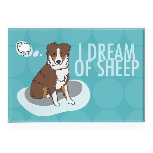 Pop Doggie I Dream of Sheep Red Brown Australian Shepherd Fridge Magnet