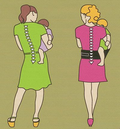Instead of twisting the spine, the back stays straight, providing comfort and security to adult and baby
