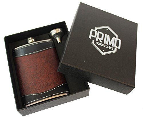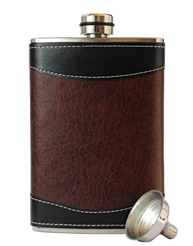 - QUALITY/STYLE: This premium 8oz flask features black/brown PU leather design wrap, upgraded heavy duty stylish copper cap, funnel and black gift box. Not all flasks are created equal! Can you buy a cheaper priced flasks on Amazon? Sure, but there is a reason... You get what you pay for! Those "others" use nonfood grade THIN steel with argon hand welds which causes leaks. Even the other sellers selling "Premium" flasks don't compare to ours.