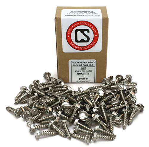 #10 X 3/4" Stainless Steel Hex Washer Head w/Slot Sheetmetal Screw (1/2" to 1-1/2" in Listing) 100 pcs Sheet Metal Screws (#10x3/4 Inch)