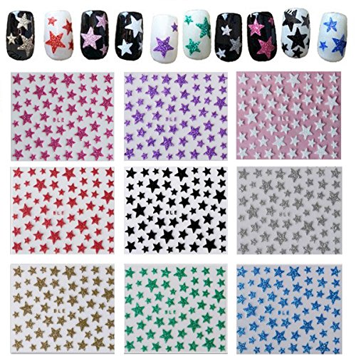 Our ALLYDREW Glitter Stars Nail Stickers Sparkly Nail Art comes as a pack of 10 sheets. Each sheet is a different color set of stars - from white stars, pink stars, silver stars, gold stars and more! Quick, easy and beautiful way to glam up your nails.