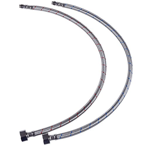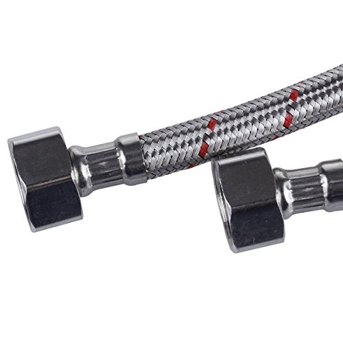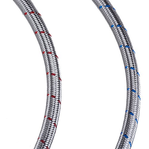 MuShang Lead-free SUS304 stainless steel hose kitchen, bedroom faucet double water inlet pipe European stainless steel hot and cold water inlet pipe PG60