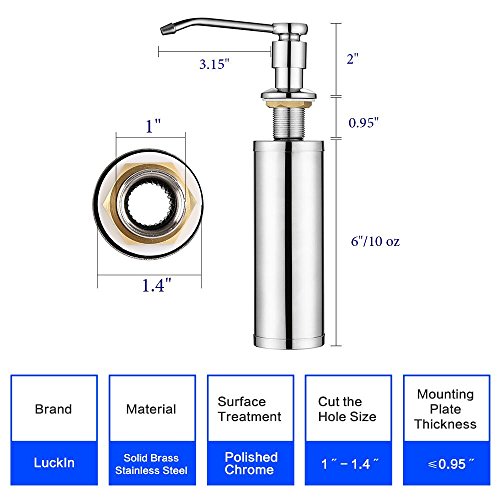 For liquid soap or lotion in kitchen lavatory and bathroom sink. Applicable hole diameter: 1-1.4 inch. Maximum sink thickness: 0.95 inch. Please carefully check the size you need before purchasing it.
