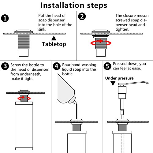 Sink Soap Dispenser Stainless Steel Built-in Countertop Dispenser Pump Liquid Bottle for Kitchen Sink, Suitable for less 0.95” Sink Thickness and 1” to 1.4” Sink Hole Diameter