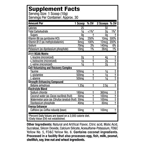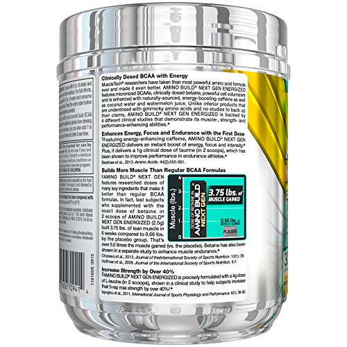 Amino Build Next Gen Energized features micronized BCAAs, scientifically dosed betaine, powerful cell volumizers , and now is enhanced with naturally-sourced, energy-boosting caffeine, along with coconut water and watermelon juice! This powerful formula is also backed by four different research studies that demonstrate its muscle-, strength- and performance-enhancing abilities. If you prefer your BCAAs and aminos to have that extra kick especially before your toughest workouts, make sure you try Amino Build Next Gen Energized.Feature