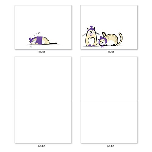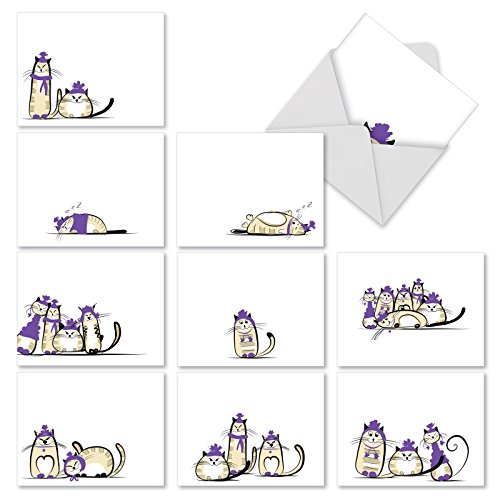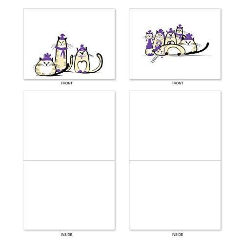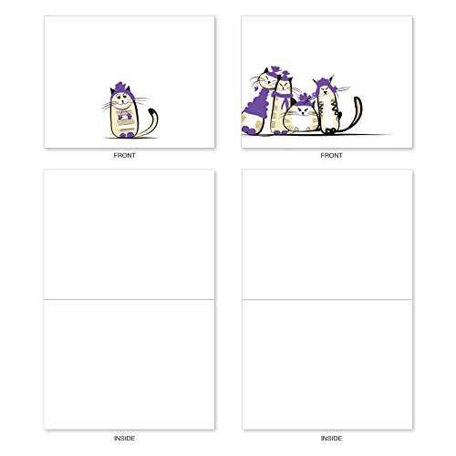 M3966 Purple Purrs: 10 Assorted Blank All-Occasion Note Cards Featuring Sweet And Sassy Kitty Friends Dressed in Purple, w/White Envelopes.